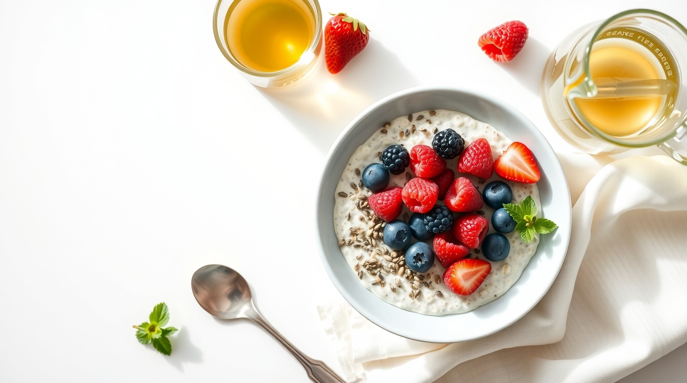 - Oats with chia seeds and berries