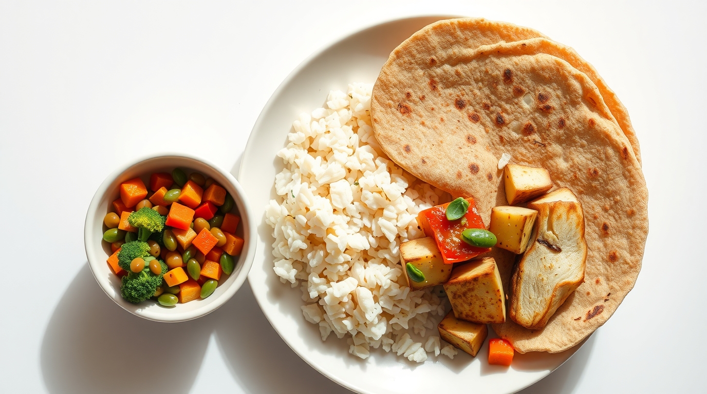 - 1 cup brown rice or 2 whole wheat/millet rotis