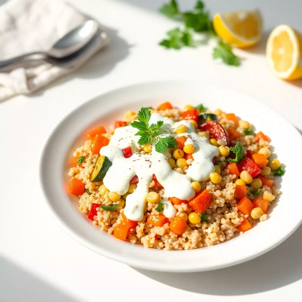5. Serve: Drizzle the lemon yogurt dressing over the mixture, garnish with fresh herbs, and enjoy!