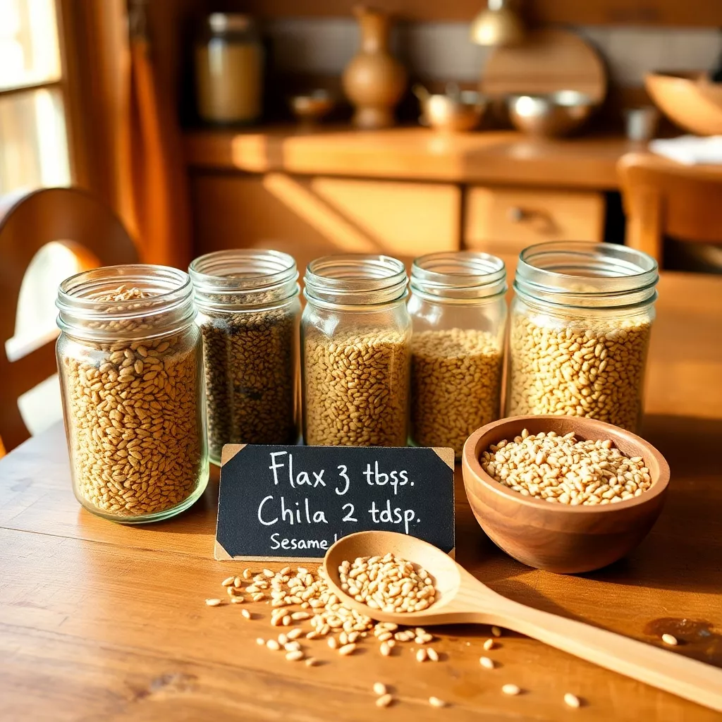 A practical guideline is 1–2 tablespoons of a seed or seed mix per day. For flax, prefer ground flaxseed. For chia, allow seeds to soak if making a pudding or add directly to liquids. Store seeds (especially ground flax) in an airtight container in the fridge.