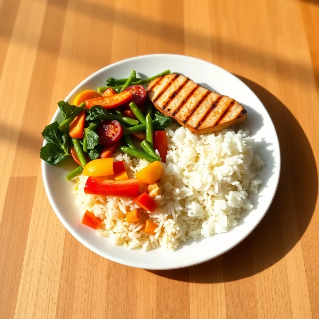 - Swap large white-rice portions → smaller portion + extra vegetables or cauliflower rice