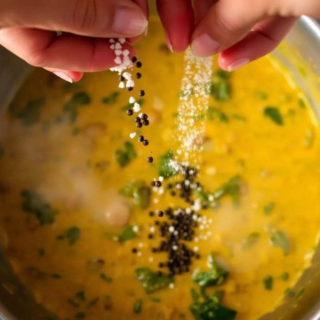 5. Season: Add salt and freshly ground black pepper to taste. Stir well and simmer for another minute.